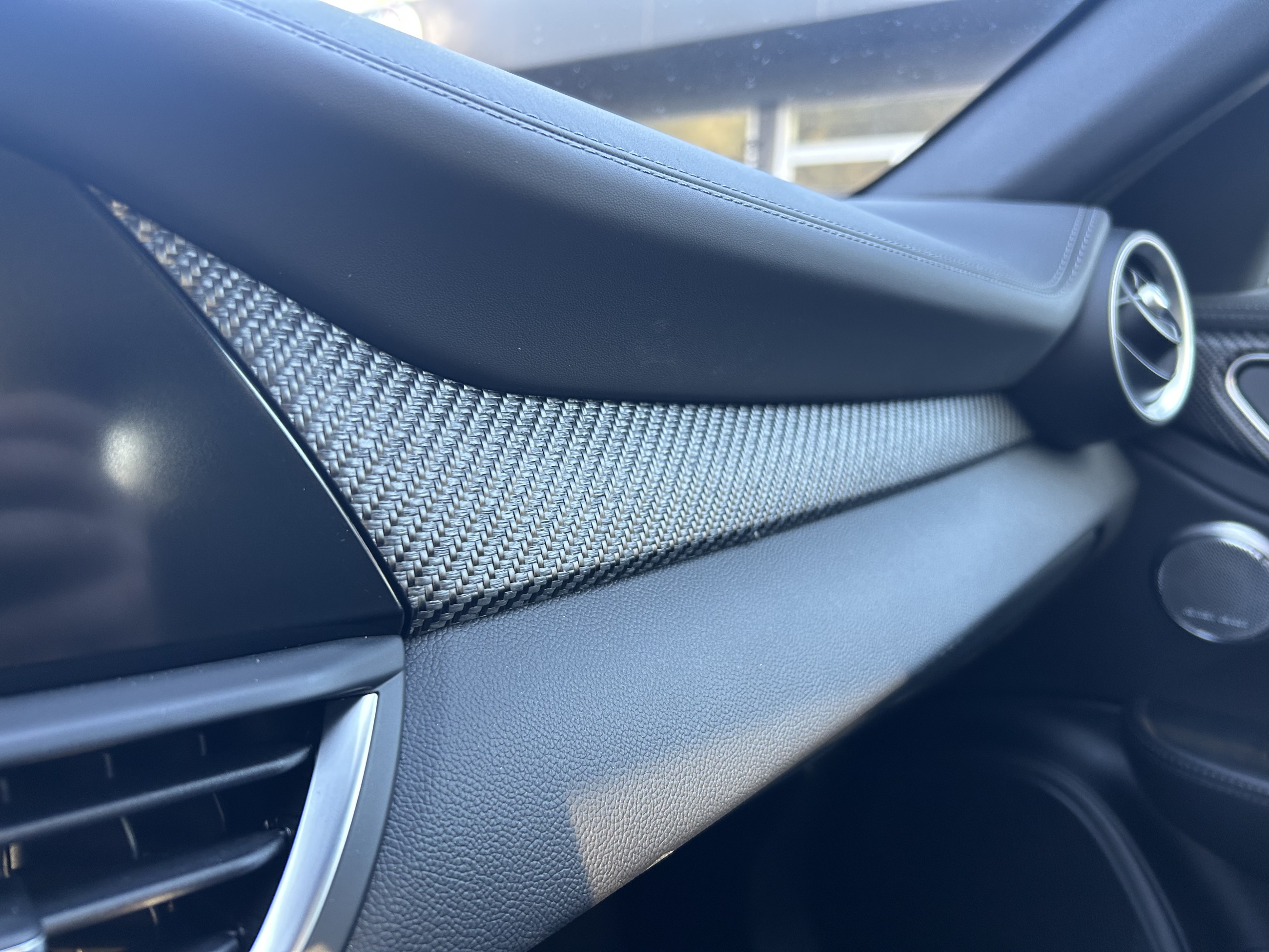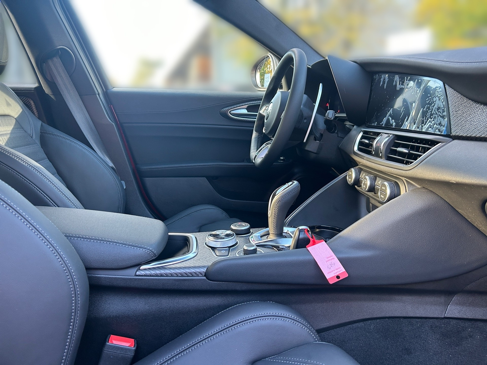 Serienausstattung:3DB - 19''-Leichtmetallfelgen CLASSICO dunkel.Bereifung: vorne 245/35 ZR19, hinten 285/30 ZR19RFX - Ablagefach für Smartphone mit induktivem LadenNH3 - Adaptive Cruise Control384 - Air-Quality-System (AQS)LAS - Aktiver Spurhalteassistent (LKA)0YP - Aktiver Totwinkel-Assistent (ABSA)MET - Alfa™ Active Aero Splitter aus KohlefaserSDD - Alfa™ Active Suspension (aktives Fahrwerk mit elektronischer Stoßdämpferregelung)9YP - Alfa™ Connect 8,8″ 3D-NAV mit Touch-Bildschirm und Bluetooth®RTK - Alfa™ Connect Services022 - Antriebswelle aus Kohlefaser8EW - Apple CarPlay / Android Auto™4H0 - Armaturentafel und Türverkleidungen mit Leder bezogen41X - Aufmerksamkeits-Assistent (DAA)64L - Außenspiegel automatisch abblendendGTD - Außenspiegel elektrisch anklappbar02X - Außenspiegelkappen in schwarz lackiert mit integrierte BlinkerBRS - BREMBO®-Bremsanlage, vorne 6-Kolben-Sattel, hinten 4-Kolben-Sattel853 - Bedienungsanleitung DeutschCDE - Beifahrersitz 6-fach (Länge, Neigung, Höhe) elektrisch verstellbar4TB - Bremssättel eloxiert03V - Dachhimmel und -säulen in SchwarzXSQ - Dekorleisten aus 100% Kohlefaser, mit offener Reliefstruktur3KJ - Digitale Instrumentenanzeige ''Cannocchiale'' mit 12,3″-TFT-FarbbildschirmRS9 - Digitaler Radioempfang (DAB)140 - Dual-Zone Klimaautomatik, getrennt regelbar112 - Elektrische Servolenkung mit Dynamic Steering Torque (DST)392 - Elektronischer Stabilitätskontrolle (ESC)18Q - Fahrdynamikregelung Alfa™ DNA Pro, 4-stufig einstellbar mit RACE-Modus136 - Fahrersitz 6-fach elektrisch verstellbar, Memory-Funktion035 - Fahrzeugbatterie hinten eingebautMMR - Fensterrahmen mit Zierleiste in glänzend SchwarzJKJ - Fernlichtassistent (AHB)500 - Frontairbags Fahrer- und BeifahrerseiteMFF - Frontgrill (Scudetto) mit Wabenstruktur, Umrandung in glänzendem Schwarz396 - Fußmatten ohne Kontrastnaht19W - Heckleuchten abgedunkelt070 - Heckscheibe und hintere Seitenscheiben abgedunkelt (Privacy Glass)MXR - Heckspoiler aus Kohlefaser409 - Heckstoßfänger mit Diffusor4JF - Hi-Fi-Audiosystem: Sound Theatre by HARMAN/KARDON®. 14 Lautsprechern, 900 W und Ambiente-Beleuchtung410 - Innenspiegel automatisch abblendend052 - Integriertes Bremssystem (IBS)SJB - Intelligente Verkehrszeichenerkennung (TSR)55B - Kollisionswarnsystem (FCW) mit autonomer Notbremsfunktion (AEB)614 - Kopfairbag, durchgehend vorne und hintenLCA - LED-Innenraumbeleuchtung, weißNHS - Lenkrad beheizbar051 - Lichtsensor046 - Motorhaube aus Kohlefaser5BH - Multifunktionstasten am Lenkrad508 - Parksensoren vorne und hinten5ZK - Quadrifoglio-Lenkrad mit Alcantara und Leder bezogen, Einsätze aus Kohlefaser5QX - Quadrifoglio-Logo, handgefertigt, seitlich auf vorderen Kotflügeln002 - Radaufhängung, Alfa™ Link, aus Aluminium6YL - Radnabenkappen mit Alfa Romeo Logo in Schwarz/Alu-Optik347 - Regensensor8F6 - Reifen-Reparaturset Fix&Go316 - Rückfahrkamera mit dynamischen Führungslinien195 - Rücksitzbank asymmetrisch geteilt und umklappbar (40:20:40)1D8 - Schalthebel im Sport-Design mit perforiertes Leder4WE - Schaltwippen am Lenkrad110 - Scheibenwaschdüsen beheizbarGX4 - Schlüsselloses Ent- und Verriegelungs-System (Keyless Entry)505 - Seitenairbag für Fahrer und Beifahrer926 - Seitenschweller in Wagenfarbe mit Kohlefaser-Einsatz452 - Sitzheizung vorne7XF - Sitzwangen elektrisch verstellbar2AJ - Sperrdifferenzial, mechanisch, Alfa™ Q24CS - Sportpedale und Fußstütze aus Aluminium788 - Sportsitze VELOCE mit Sitzbezüge in Leder556 - Stoßfänger vorne und hinten im QUADRIFOGLIO-DesignRS3 - USB- und AUX-IN-Anschlüsse3KL - Voll-Matrix-LED-Scheinwerfer mit automatischer adaptiver Ausleuchtung062 - Vollständig verkleideter Unterboden007 - ZF® 8-Stufen Automatikgetriebe